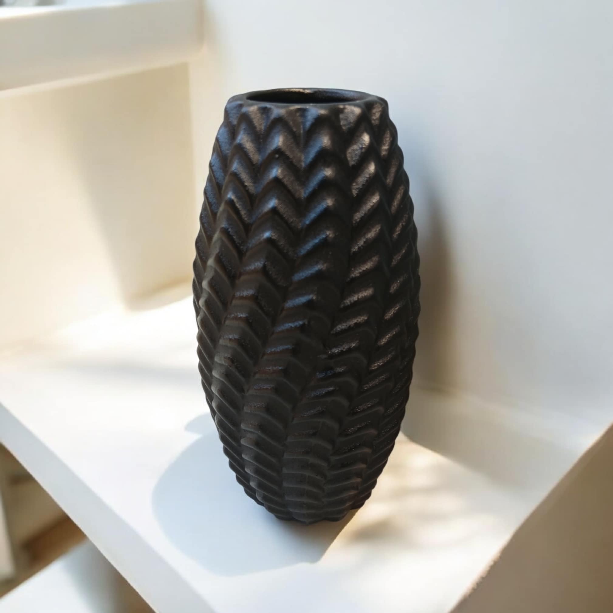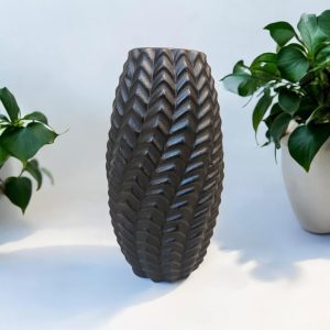 Διακοσμητικό βάζο, κεραμικό, σε μαύρο χρώμα με μοναδικό σχήμα. Είναι κατάλληλο για αποξηραμένα λουλούδια – μην βάζετε νερό.