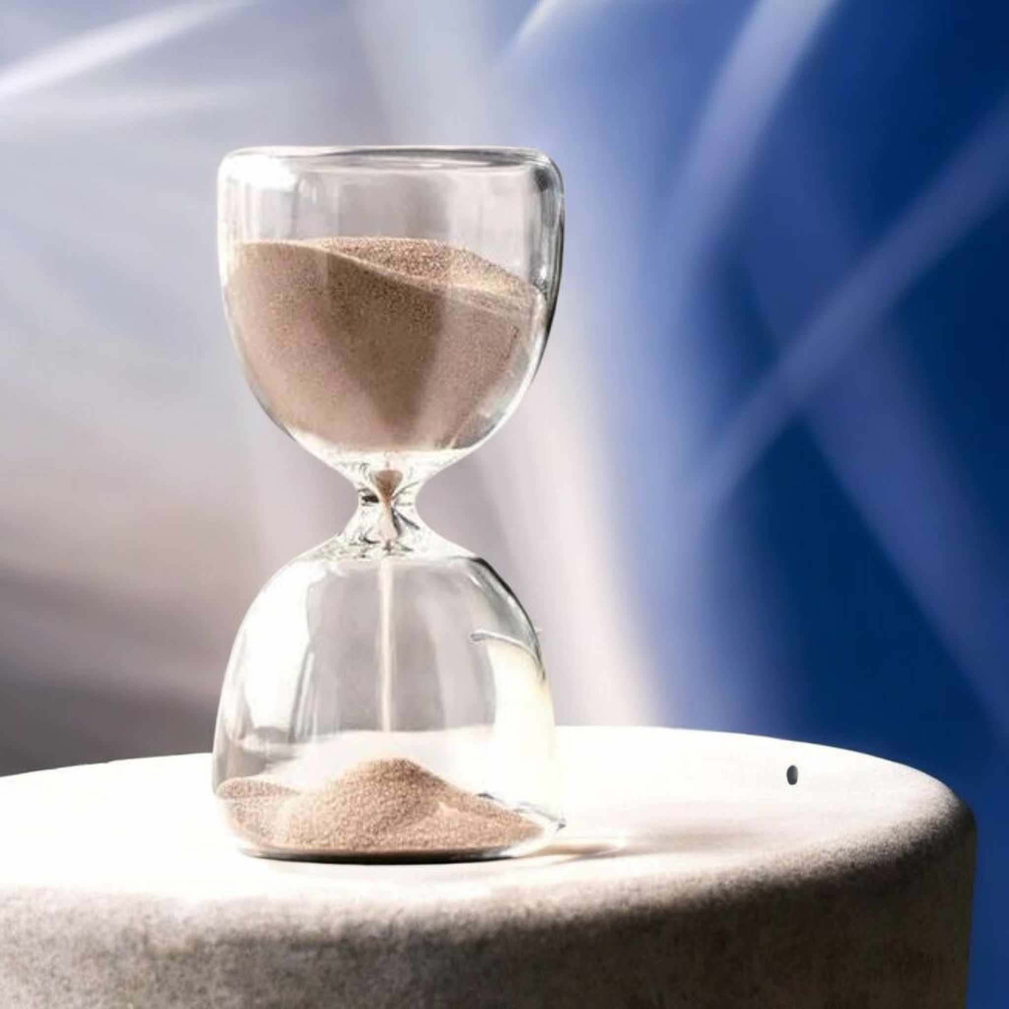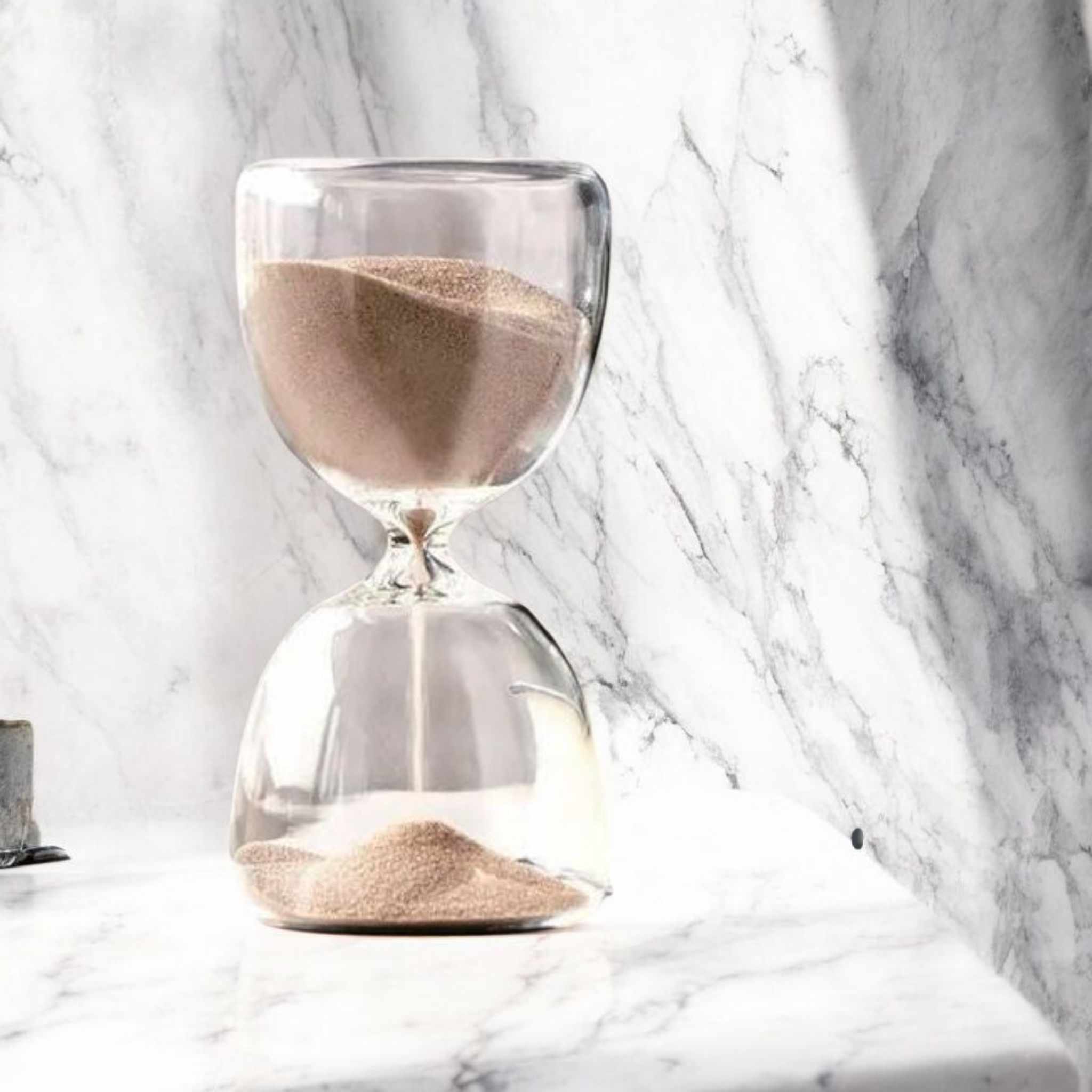 Γυάλινη κλεψύδρα με μπρονζέ άμμο, σε κλασσικό σχήμα.