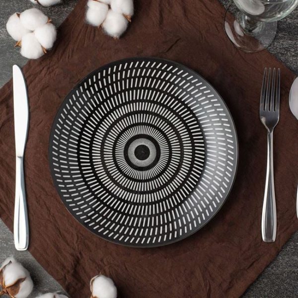 Πιάτο Ρηχό Πορσελάνη Μαύρο Σχέδιο Λευκές Γραμμές Ø19cm