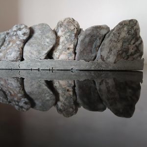 Κερί από υψηλής ποιότητας εξευγενισμένη παραφίνη, με φυσικές πέτρες θάλασσας, τσιμέντο και διακοσμημένο με φυσικό φλοιό πεύκου.
