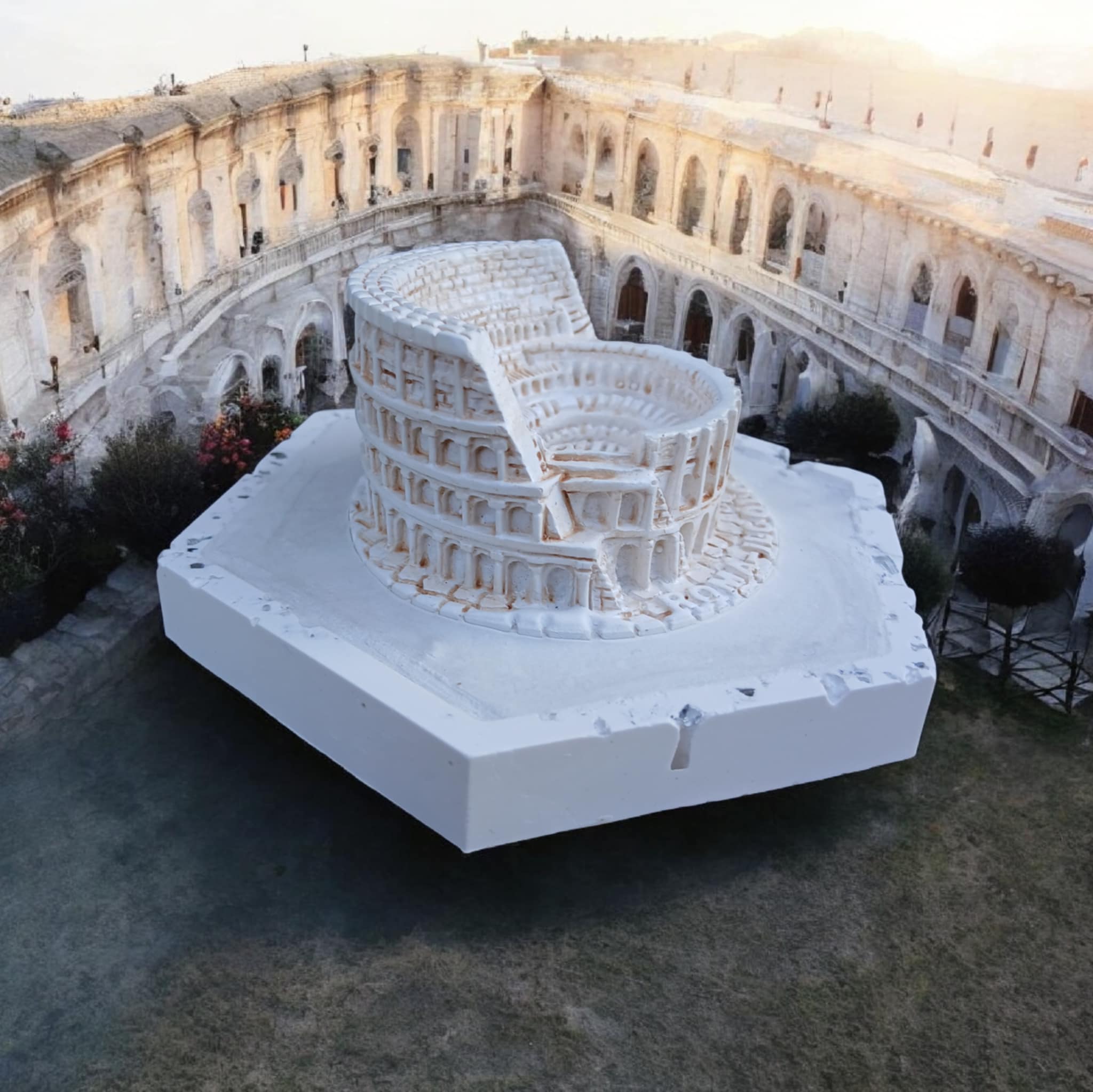 Χειροποίητο διακοσμητικό σε σχήμα πολύγωνο, από σκόνη πορσελάνης, διακοσμημένο με αυθεντική ιταλική διακοσμητική μινιατούρα. Κολοσσαίο (ιταλ. Colosseo).