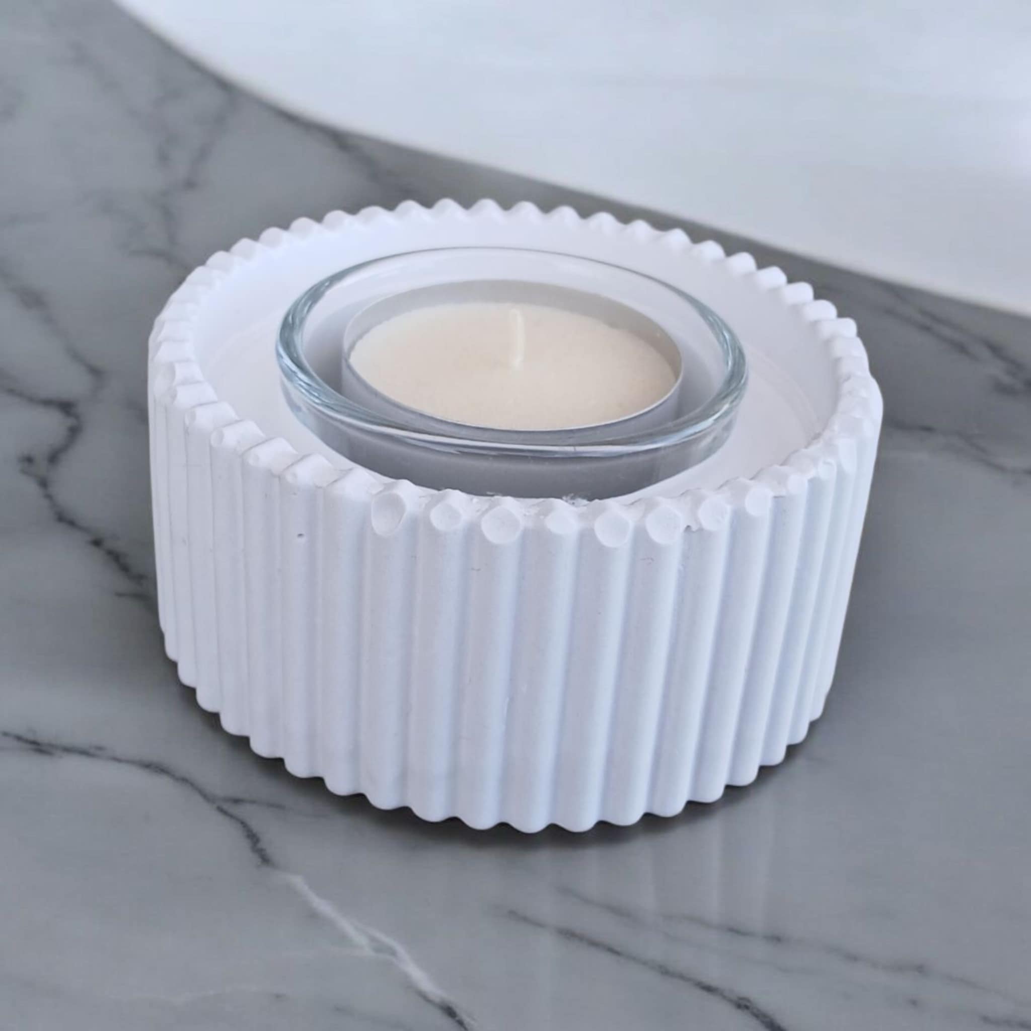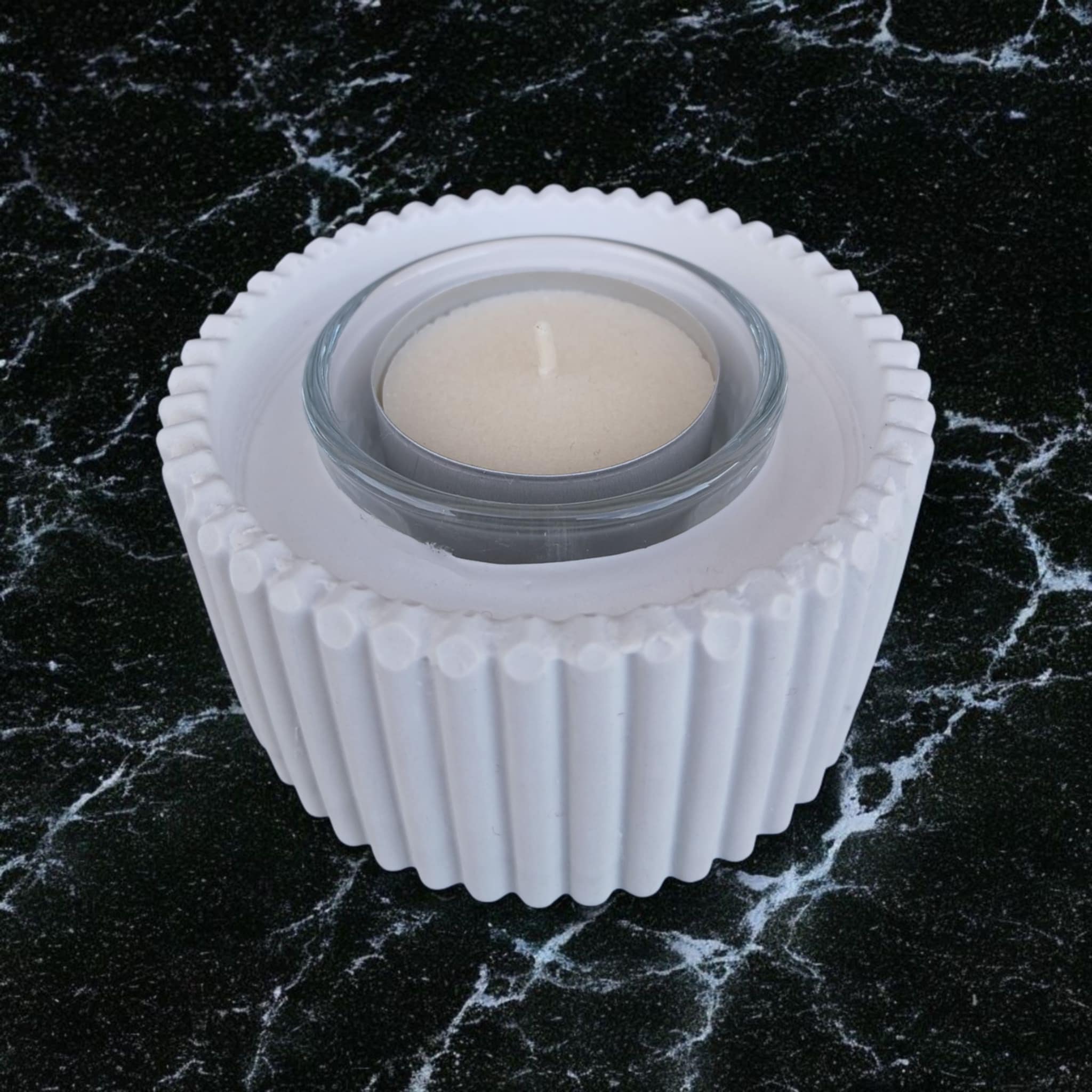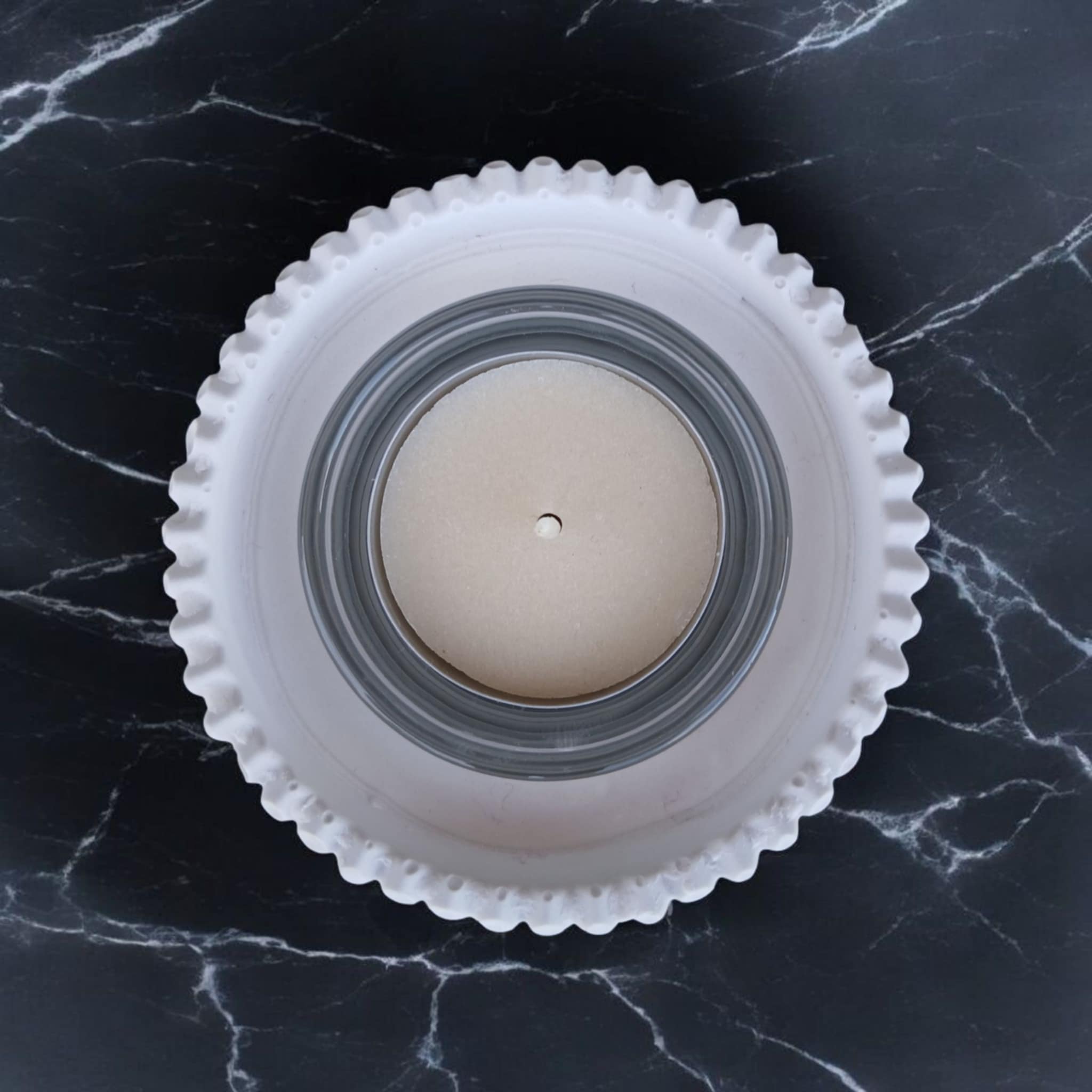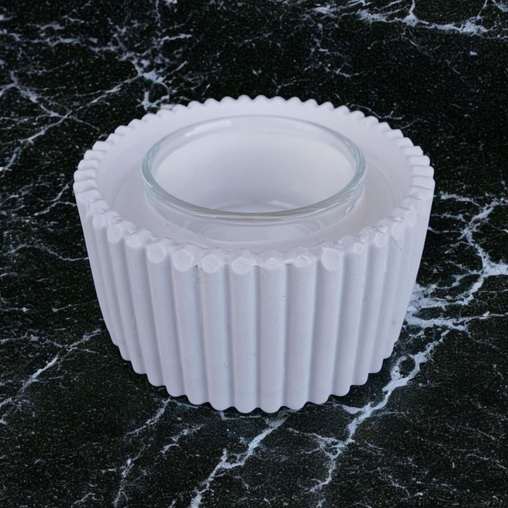 Χειροποίητο διακοσμητικό – θήκη ρεσώ, από σκόνη πορσελάνης, με ενσωματωμένη γυάλινη θήκη ρεσώ.