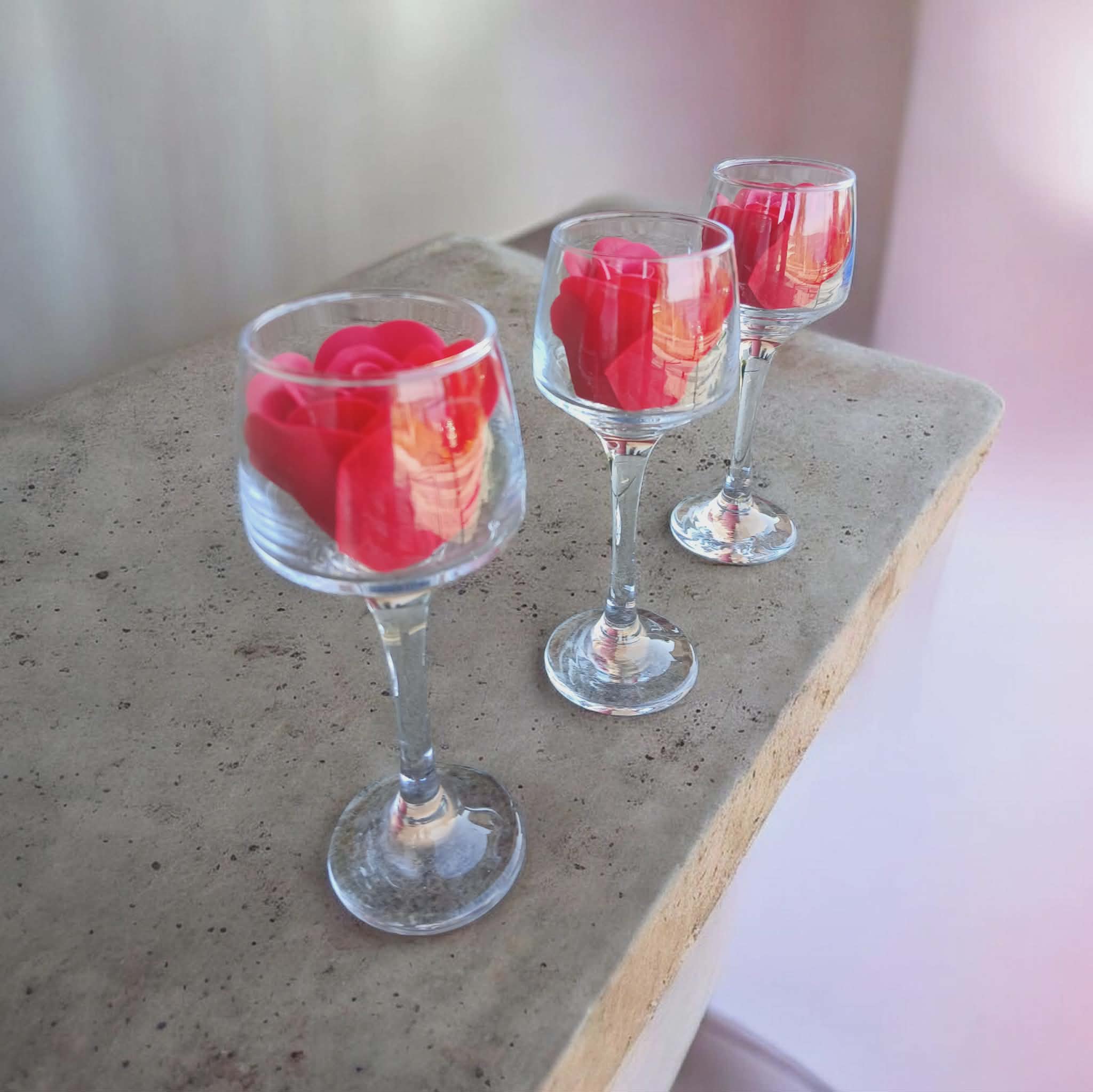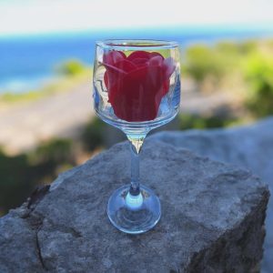 Διακοσμητικό γυάλινο ποτήρι με κόκκινο τριαντάφυλλο.