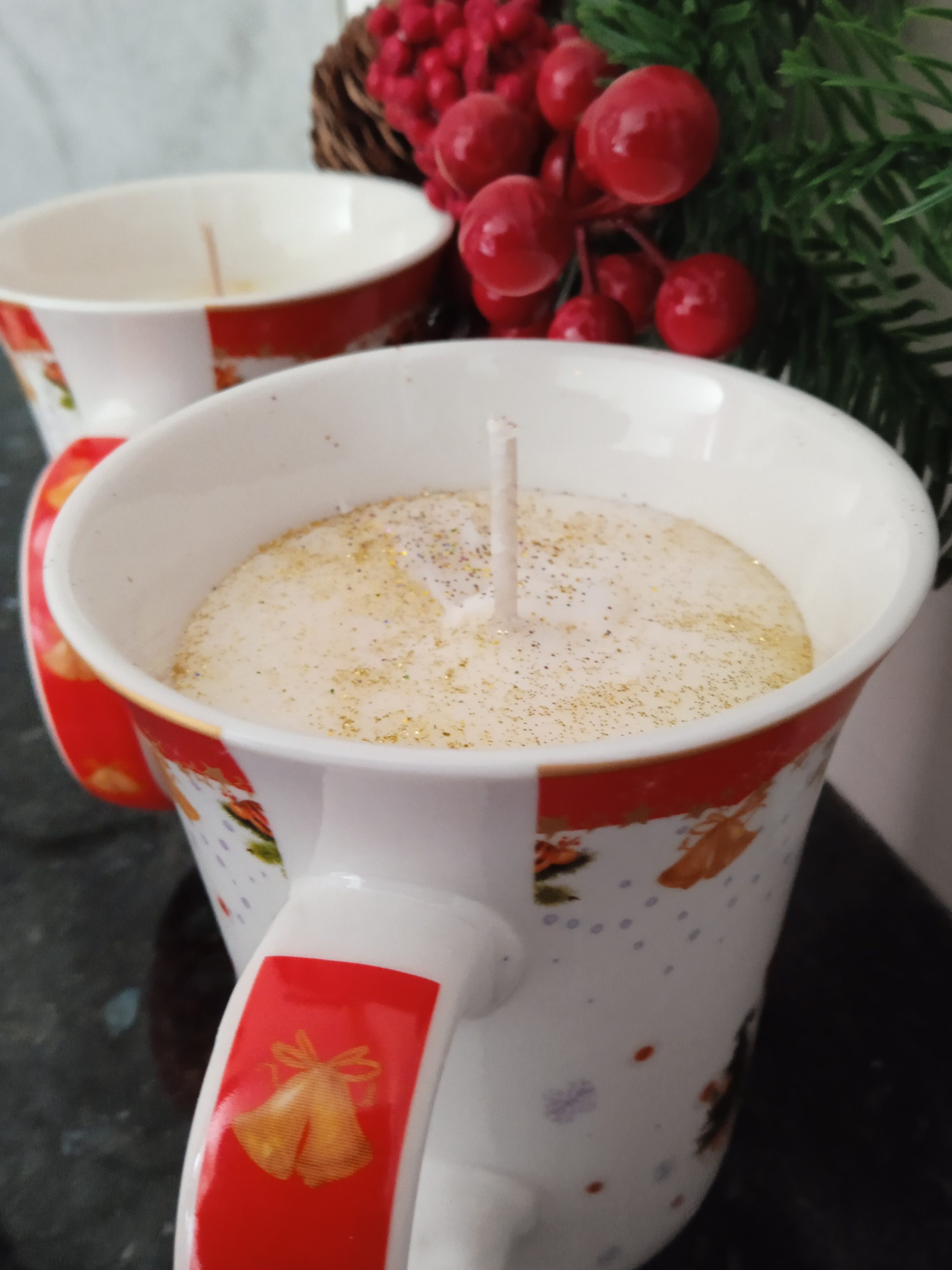 Χριστουγεννιάτικο Aρωματικό Φυσικό Κερί σόγιας σε χριστουγεννιάτικη κούπα.