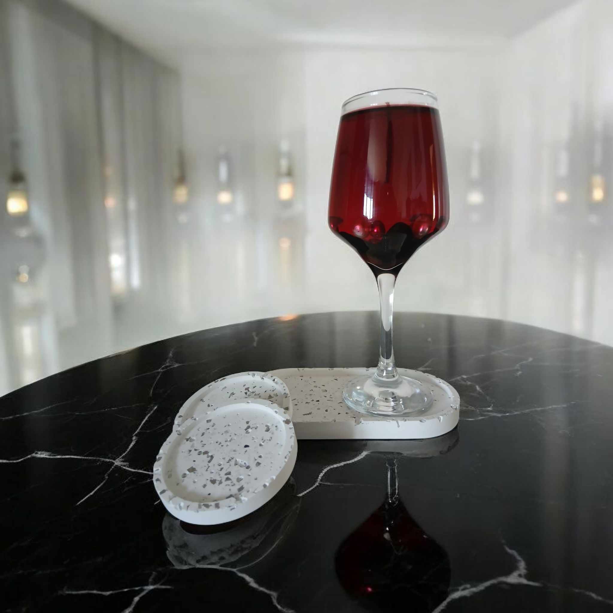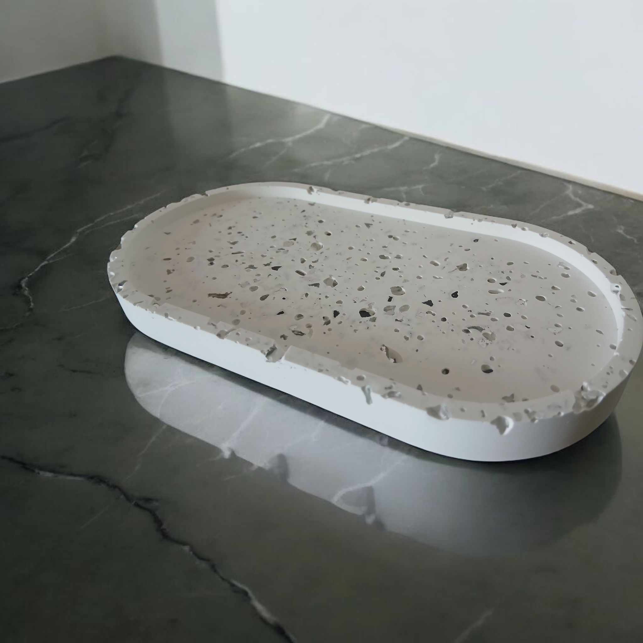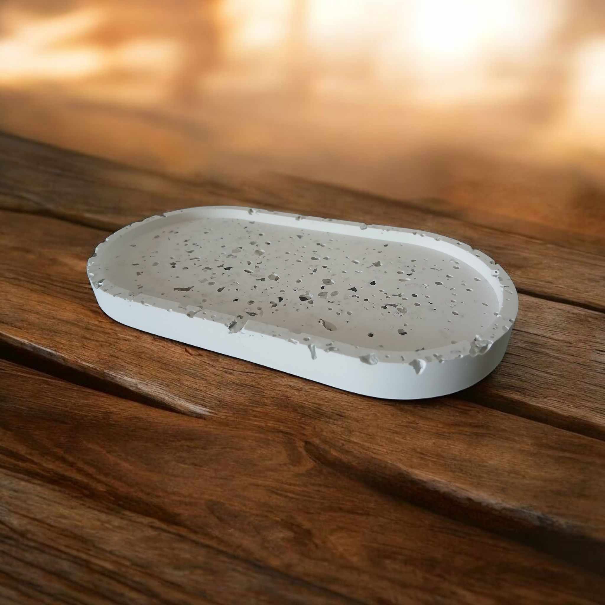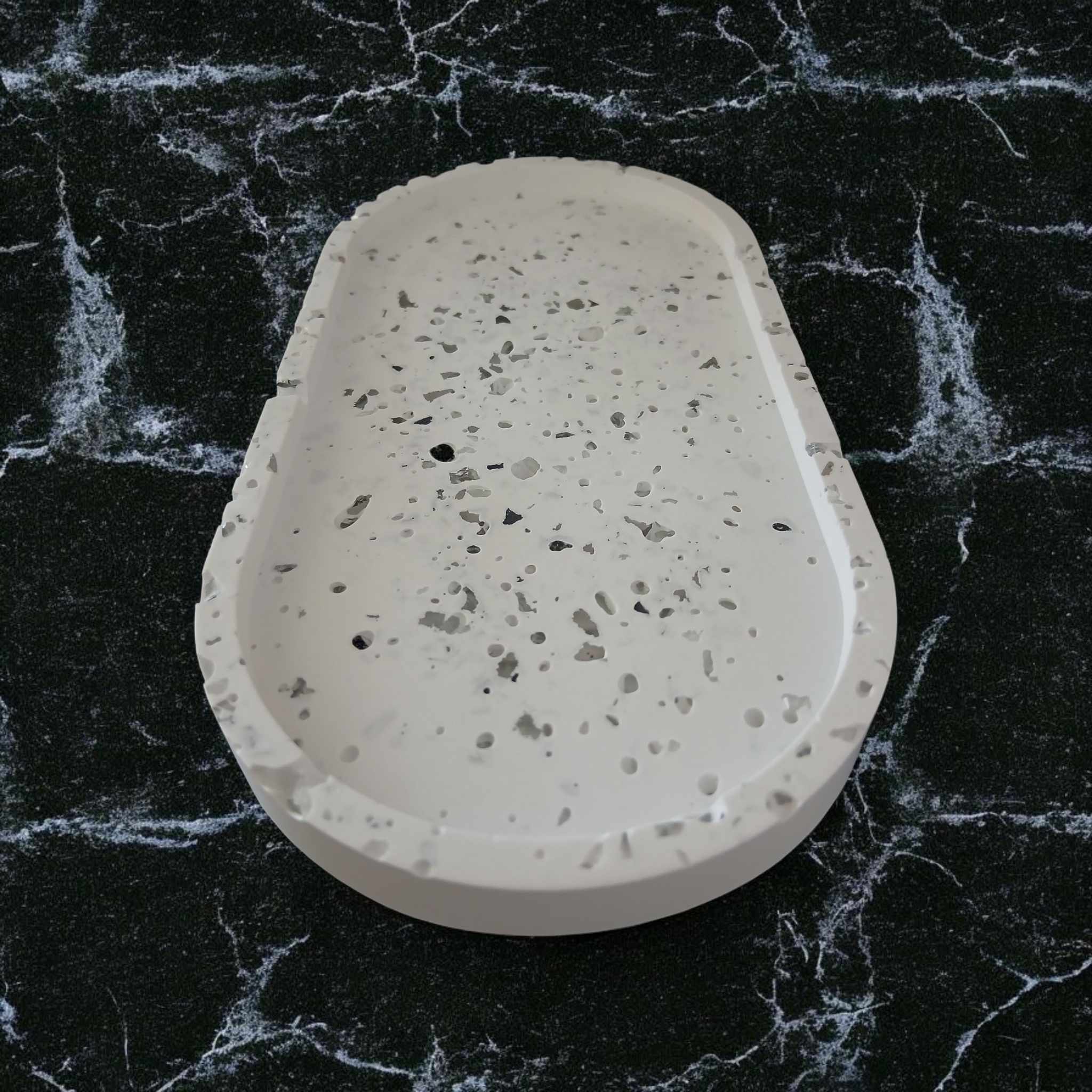Χειροποίητος διακοσμητικός δίσκος, από σκόνη πορσελάνης, διακοσμημένος με θρυμματισμένο γυαλί σε minimal γραμμή.
